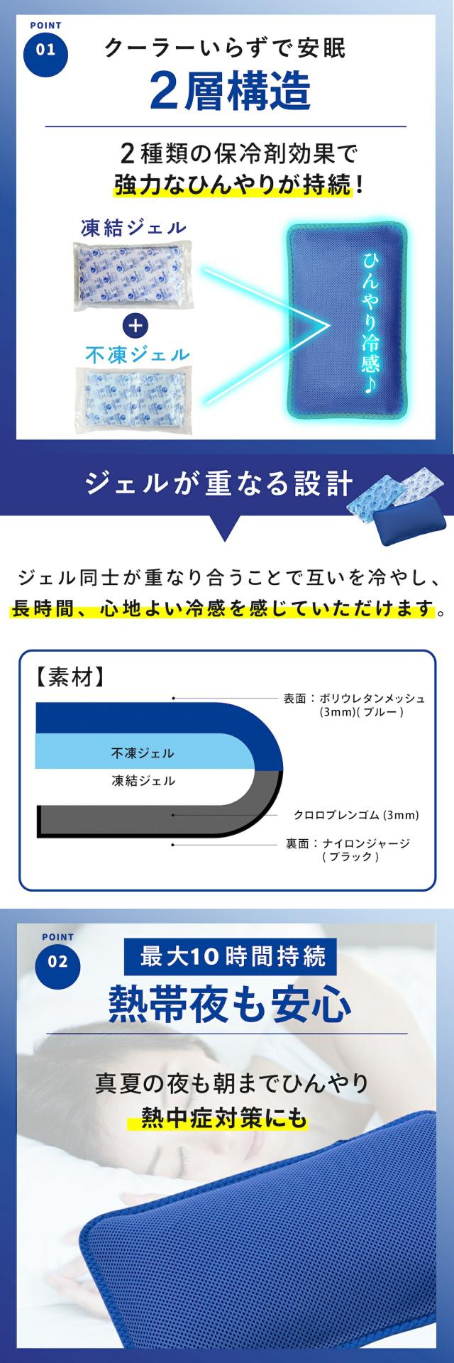 ひんやりした爽快感が長時間持続し、クーラーいらずで安眠できます。