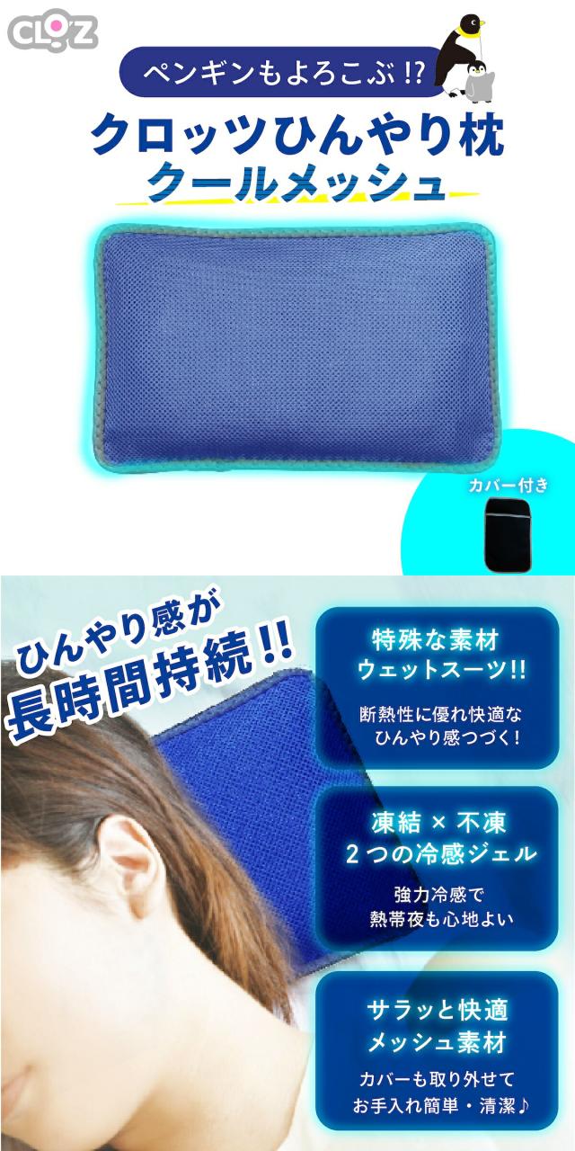 ひんやり枕 クールメッシュ クロッツ ひんやり ひんやりグッズ 保冷枕 冷感 枕 ジェル ひんやりまくら 冷感ジェル枕 冷感まくら 冷感枕 冷たい枕 枕カバー 枕 低め 熱中症対策 クールグッズ 冷感グッズ 暑さ対策 安眠 CLO’Z