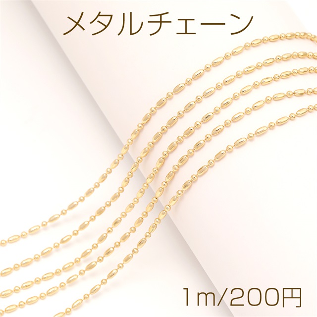 メタルチェーン ロングボールチェーン ネックレスチェーン アクセサリーチェーン 色落ちしにくい 銅製 18Kゴールドメッキ(長さ1m)