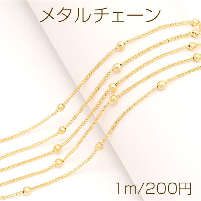 メタルチェーン メタルビーズ装飾キヘイチェーン ネックレスチェーン アクセサリーチェーン 色落ちしにくい 銅製 18Kゴールド(長さ1m)