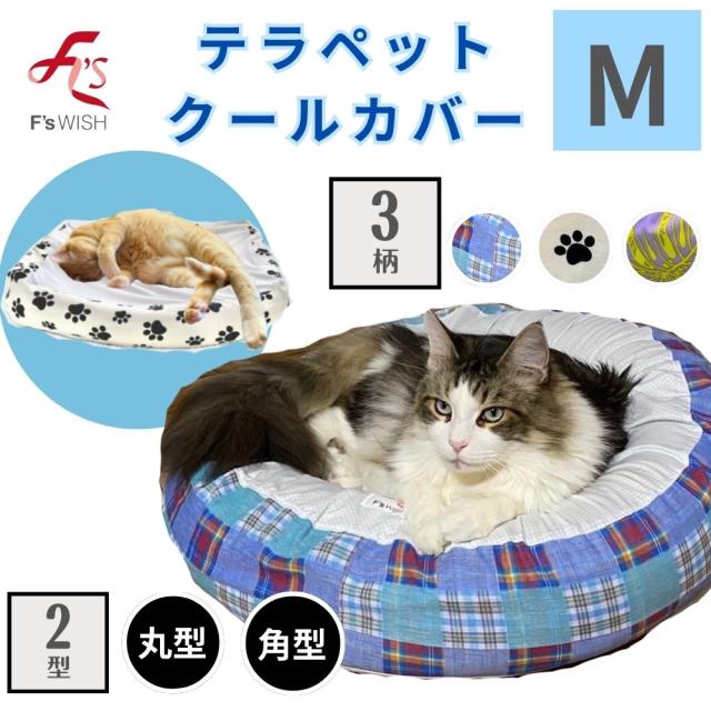 【接触冷感】テラペットクール カバー Mサイズ 丸型 角型 ペット用 クールベットカバー 接触冷感 放熱 犬用クッション 猫用クッション クール生地 クールベット クールカバー 夏場対策 体温調整 体温上昇 昼寝用 テラヘルツ 猫 犬 小型犬 中型犬 ペット 介護
