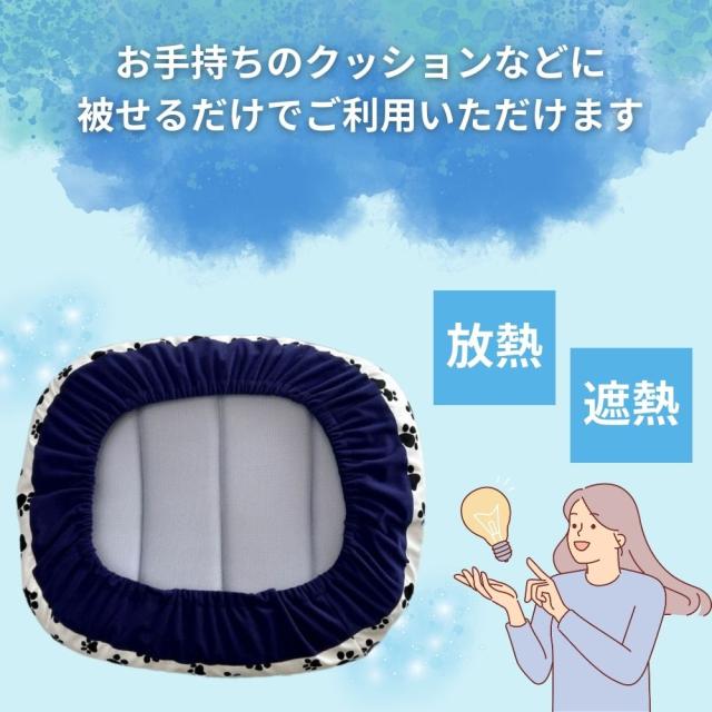接触冷感と放熱作用のダブル冷感作用があり、夏の暑い時期に体温調整が難しいワンちゃんネコちゃんの体温上昇を防ぎ、心地よく感じるペット用ベットカバーです。