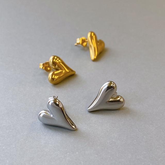 送料無料 ニュアンスハートステンレスピアス サージカルステンレス 金属アレルギー対応 レディース SUS316L つけっぱなし 変形