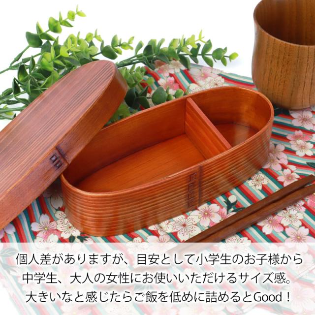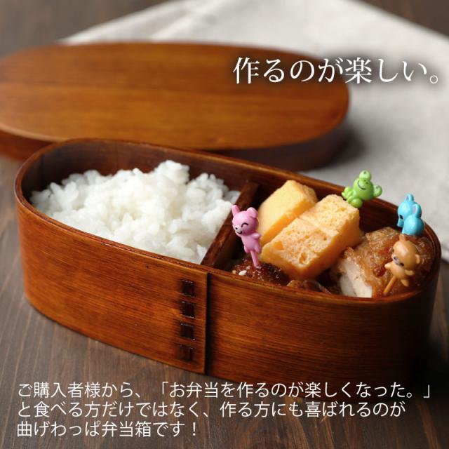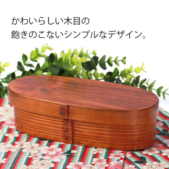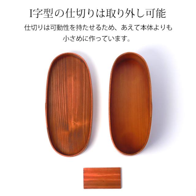 | 商品説明 | かばんやリュックにすっぽり入るスリム型の曲げわっぱ弁当箱です。 木の香りがほのかに漂い、とてもリラクゼーションさせてくれます。 自然素材の木の曲げわっぱ弁当箱で、ゆっくりと食べるのも良いものですね。 木の調湿作用でごはんが冷めても美味しく頂けます。 夏はごはんが傷みにくく、冬はごはんが固くなりにくく、一年を通して非常に機能性の高いお弁当箱です。 電子レンジ対応していませんが、電子レンジで温めなくても美味しいお弁当が食べられます。 また、食洗機対応ではございませんが、漆塗りを施していますので、手洗いで簡単に洗うことができます。 見て懐かしく、でも、今の時代にはモダンに映る「曲げわっぱ弁当箱」手に取ると、軽くて木の温もりを感じるやさしい気持ちに。 ほのかな木の香りが心地よく、懐かしく温かい気持ちになる使い心地。 日本文化のお弁当をおしゃれに普段使いに使っていただければ幸いです。 工芸品が身近にあることで、伝統文化の継承につながればと、ささやかながら願っています。 取り外し可能なI字型の仕切りなので、付けるとご飯のスペースとおかずスペース、外せば広く使えます。 |