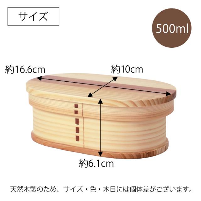曲げわっぱ 小判型 お弁当箱 500ml 白木 弁当箱 1段 天然木製 曲げわっぱ弁当箱 まげわっぱ ランチボックス 和風 モダン 女性 レディース 子供 大人 男の子 女の子 キッズ おしゃれ かわいい 軽量 軽い 運動会 遠足 木製 送料無料