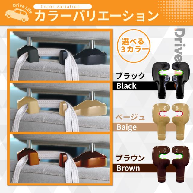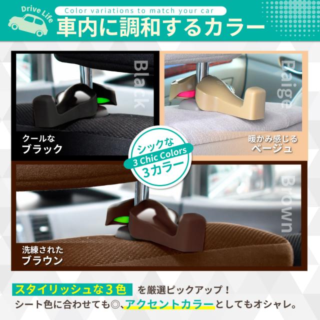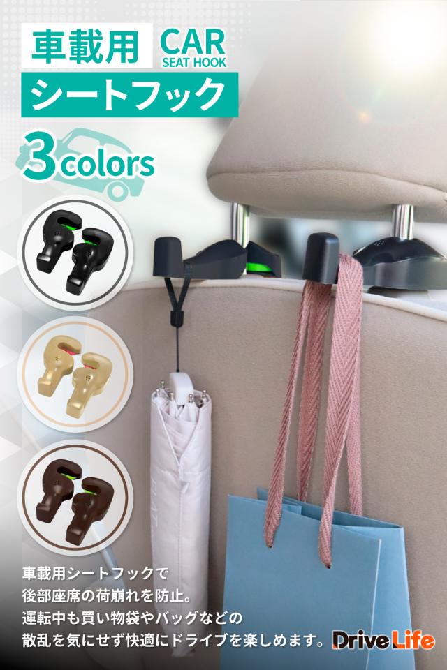 車 フック 車載フック シートフック ヘッドレストフック 車用フック 荷物フック 運転席 助手席 フック 車載用シートフック 2個セット ドライブライフ シズカウィル