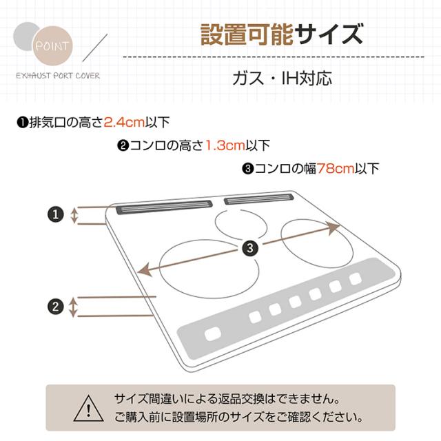 - 換気口がすぐに外れて困ってました。 サイズ調整ができて、上に鍋や、出来た料理も置けるので、助かってます。台所が狭いので。 グリルを使わないので取り外す事なく使用してます。