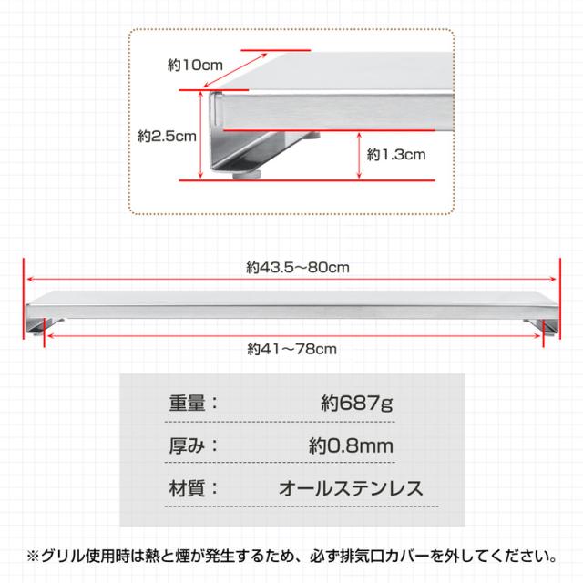 新生活 排気口カバー 伸縮 80cm 75cm 60cm 45cm 41cm フラット ステンレス IH ガス コンロ コンロカバー グリルカバー キッチン ラック 掃除 汚れ防止 sg217