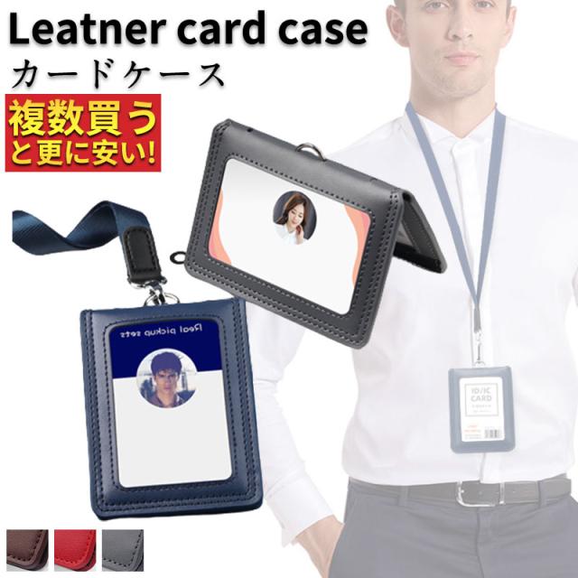 2点購入で10%OFF idカードケース 横型 縦型 本革 IDカードホルダー ネックストラップ付き メンズ プレミアムレザー 社員証 耐衝撃