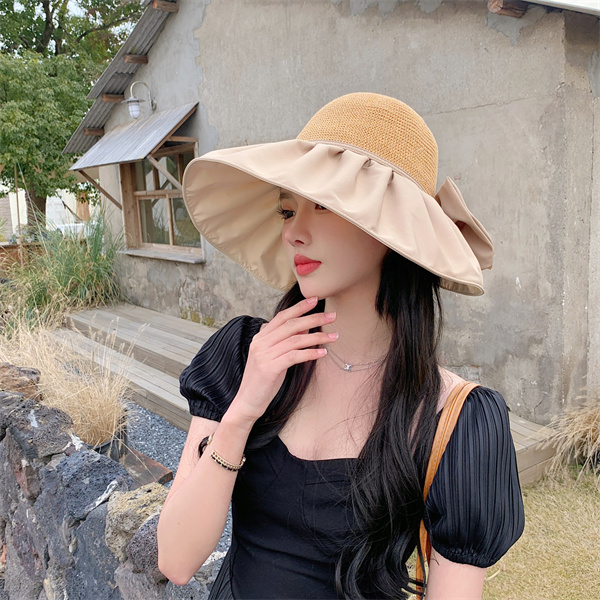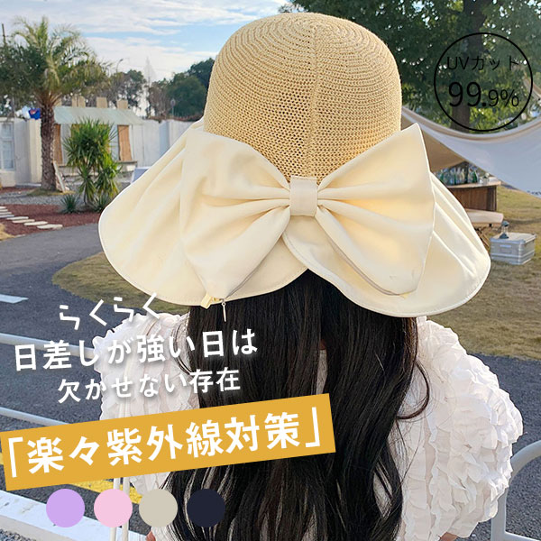 半額 帽子 レディース ちょう結び 大きいサイズ 完全遮光 遮光100%カット UVカット つば広 折りたたみ 自転車 飛ばない 日よけ 日傘 春夏