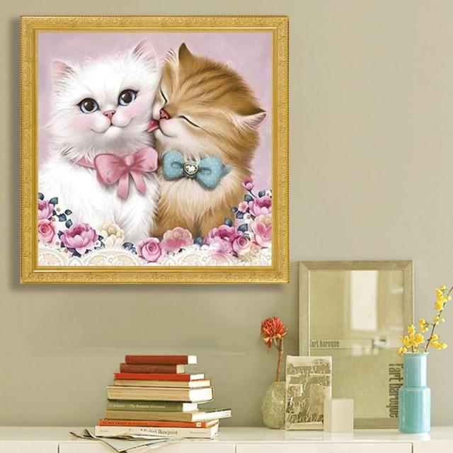 5D ダイヤモンドアート 猫 ラブ ネコ 動物 ねこ かわいい ビーズアート モダン 手芸キット 壁飾り 初心者向け モザイクアート 送料無料