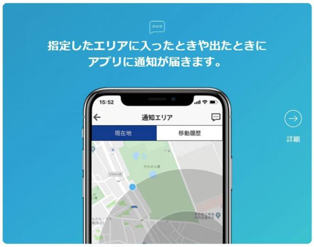 あらかじめ指定したエリアに入ったり、そこから出たりしたときに通知が届きます。