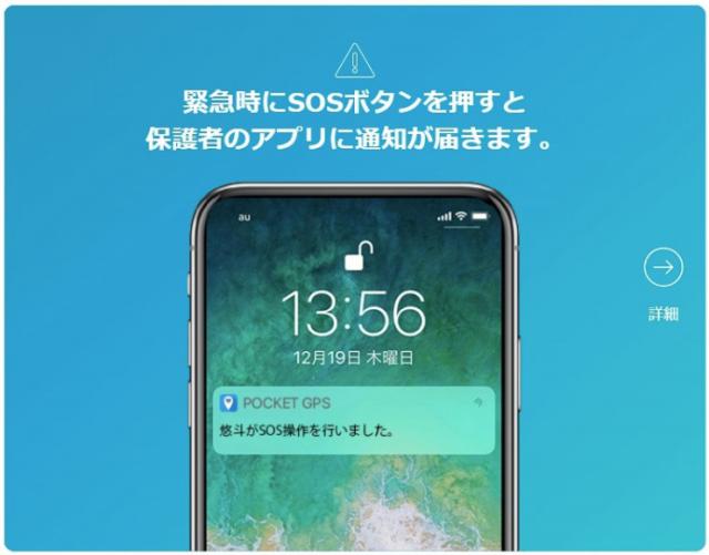 本体のSOSボタンを押すことで、子供からスマホへSOS通知ができるボタンを搭載。見守る側が異常を察知することができます。