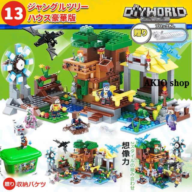 ジャングルツリーハウス豪華版900+(バケツ+基礎板2) ブロック マイワールドシリーズ レゴ互換 マインクラフト風 マイクラ 積み木 パズル MINECRAFT マイクラ 子ども プレゼント