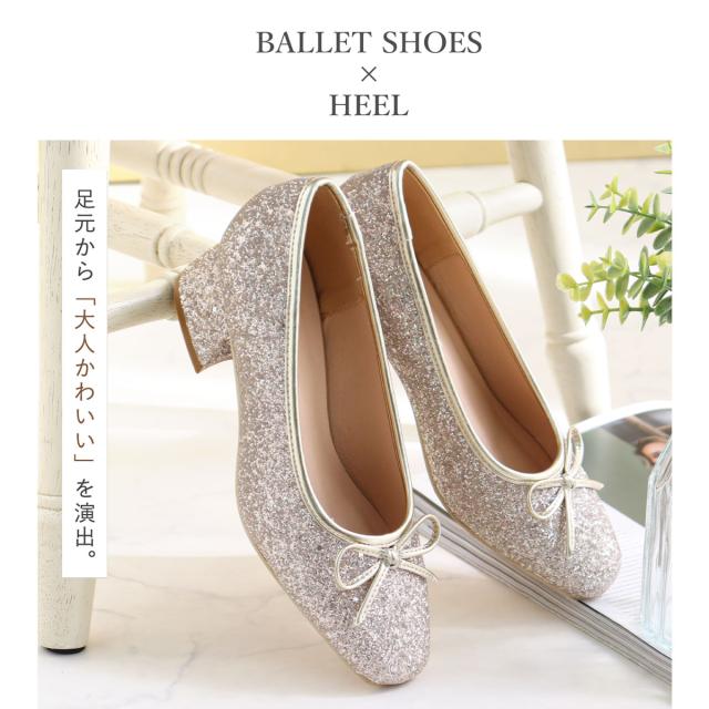 バレエシューズはカジュアルな印象のアイテムですが、ヒールがあることでエレガントな雰囲気に仕上あがった一足。