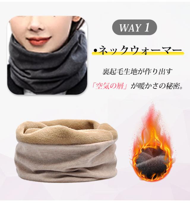肌に触れた瞬間から温まる、裏起毛でポカポカ、しっかりと首元を保温してくれます。
