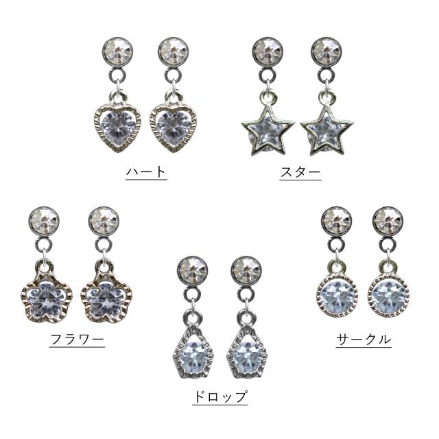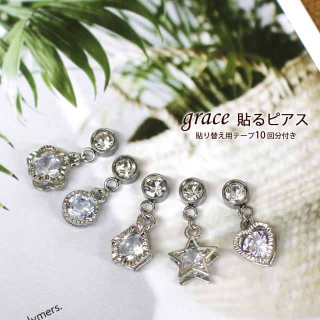 grace貼るピアス デザインシルバー 選べる5種 選べるデザイン 貼り替えテープ付き ノンホールピアス シールピアス ハート スター ラウンド サークル フラワー ドロップ 貼るだけ レディース ピアスシール 痛くない リフィルテープ 揺れるデザイン