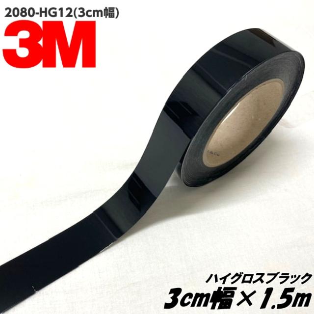 3Mラッピングシート 3cm幅×1.5m ハイグロスブラック 2080-HG12 光沢艶あり ウインドウモール ルーフモール用カーラッピングフィルム ストライプラインテープ