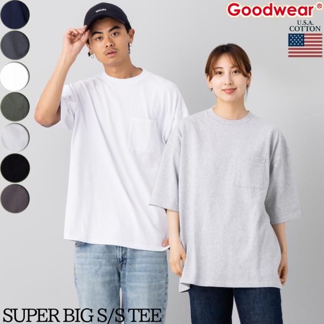 グッドウェア Goodwear USAコットン スーパービッグ 無地ポケットT メンズ レディース ユニセックス 春 夏 Tシャツ カジュアル 半袖 シャツ コットン 綿 肉厚 ビッグT ビックシルエット 2W7-2501