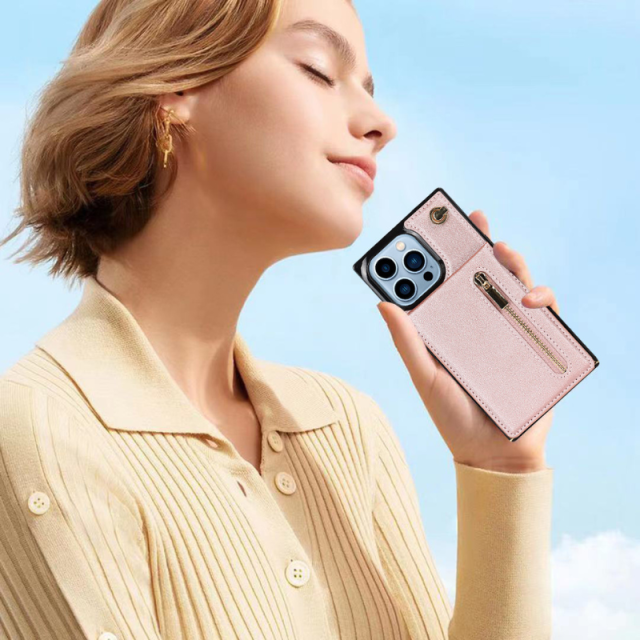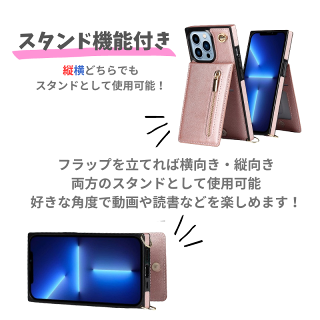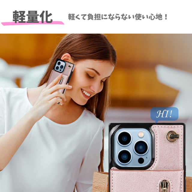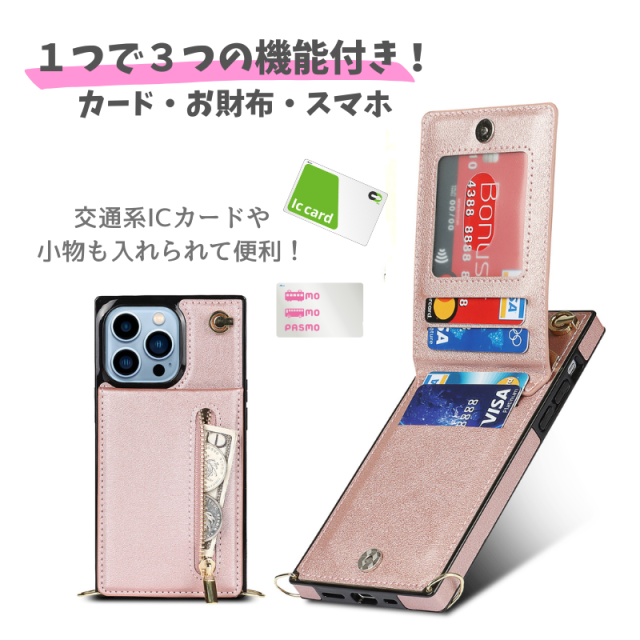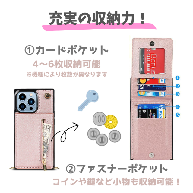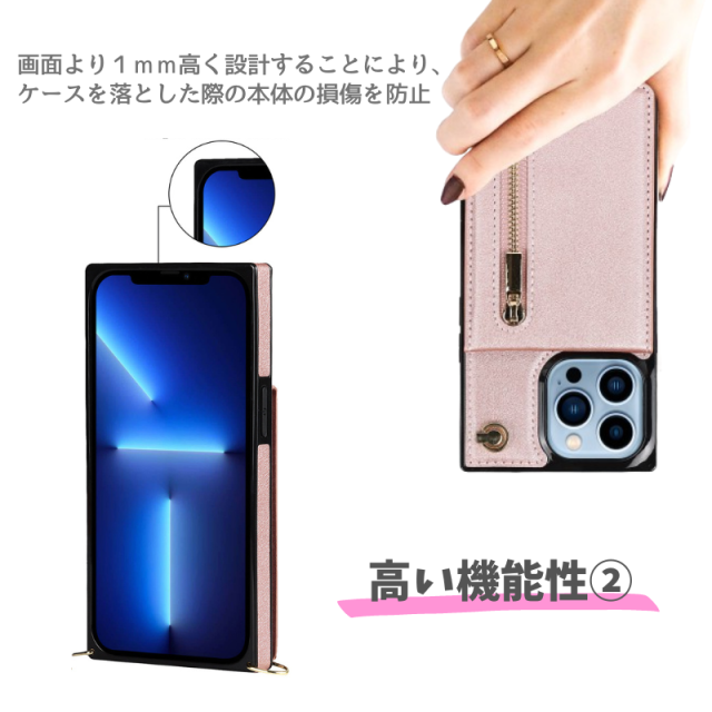 iPhone 12 ProMax ケース ショルダー スマホケース 肩掛け 首かけ 斜めがけ ストラップ レザーカードケース 小銭入れ iPhone12ProMax ピンク