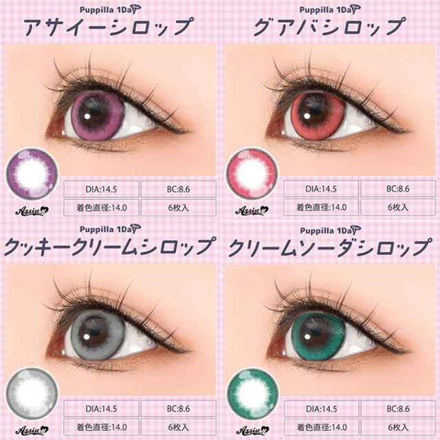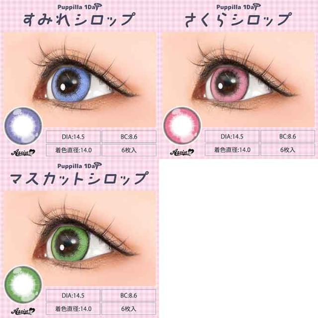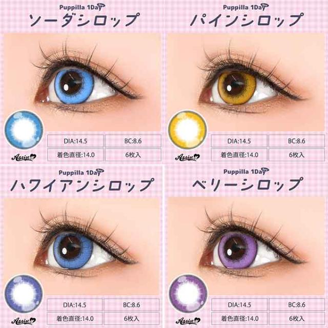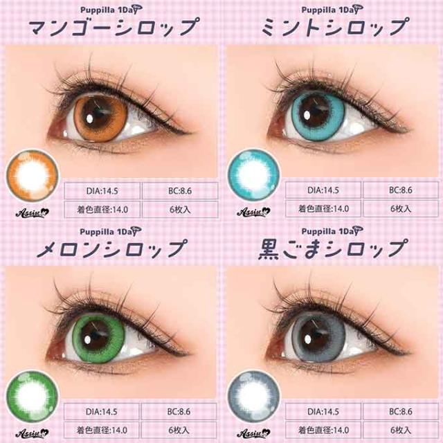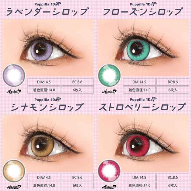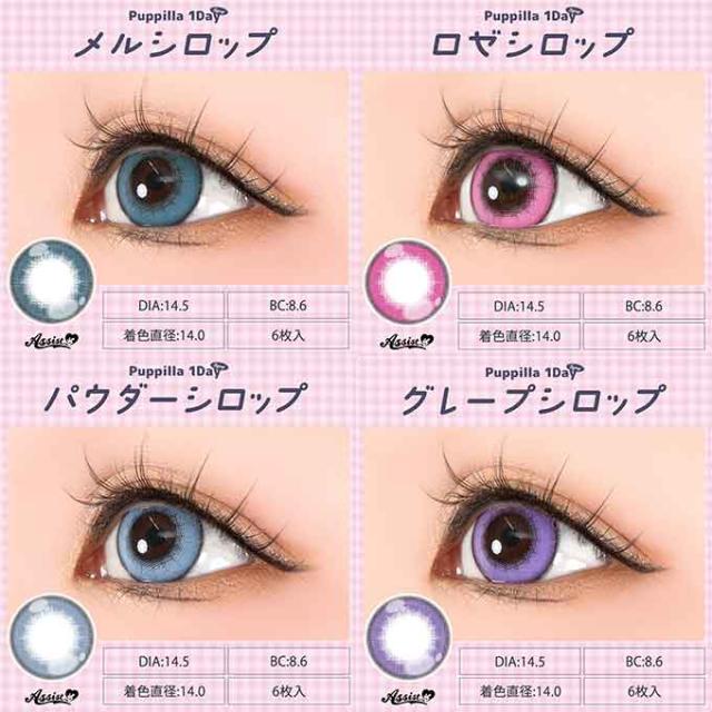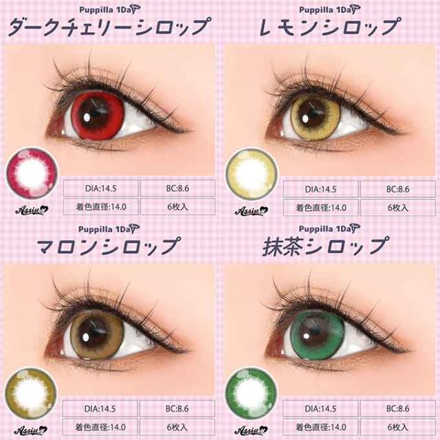 (10%OFFクーポン!)(1箱6枚)アシストシュシュ パピーラ 1day シロップ ワンデー 度なし 度あり カラーコンタクト 14.5mm 高発色 コスプレ