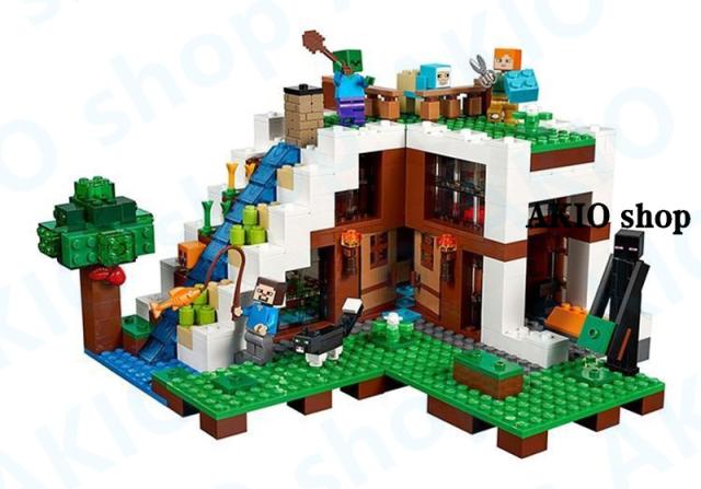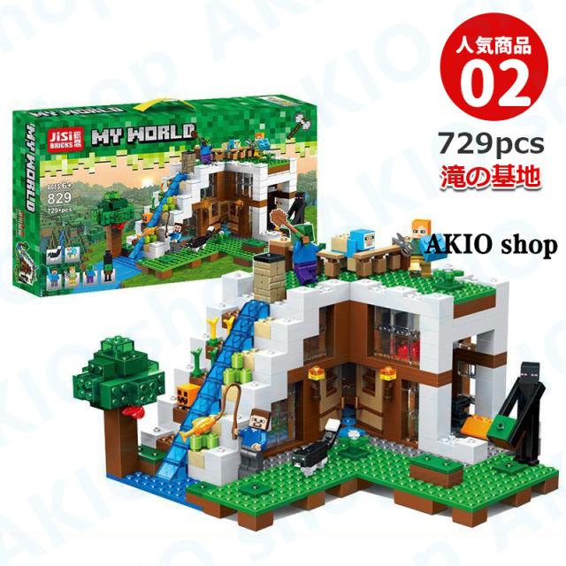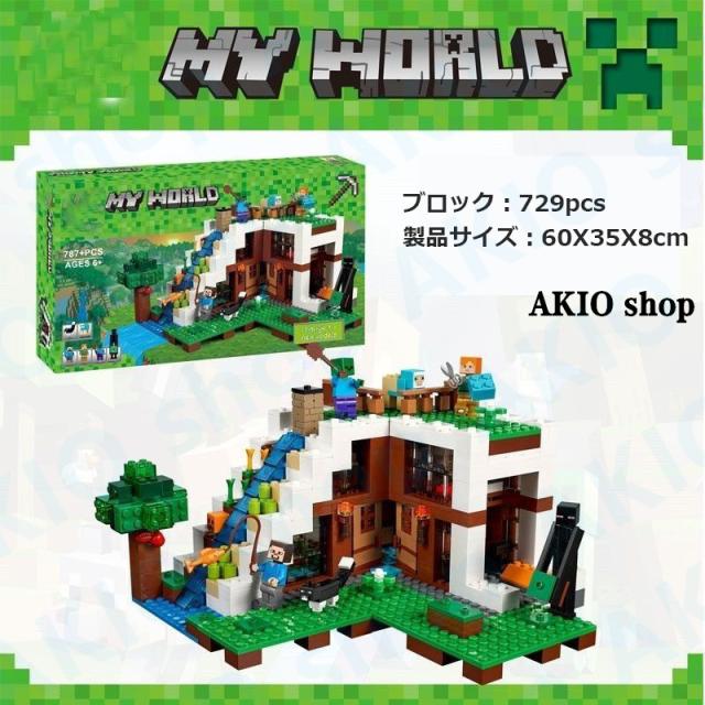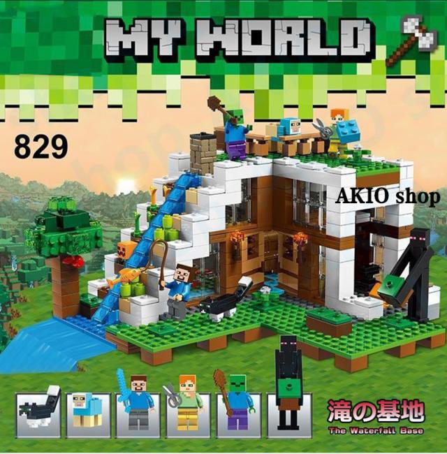 滝の基地 マインクラフト風 ブロック マイワールドシリーズ レゴ互換 マイクラ 積み木 パズル 大冒険 MINECRAFT マイクラ 子ども プレゼント