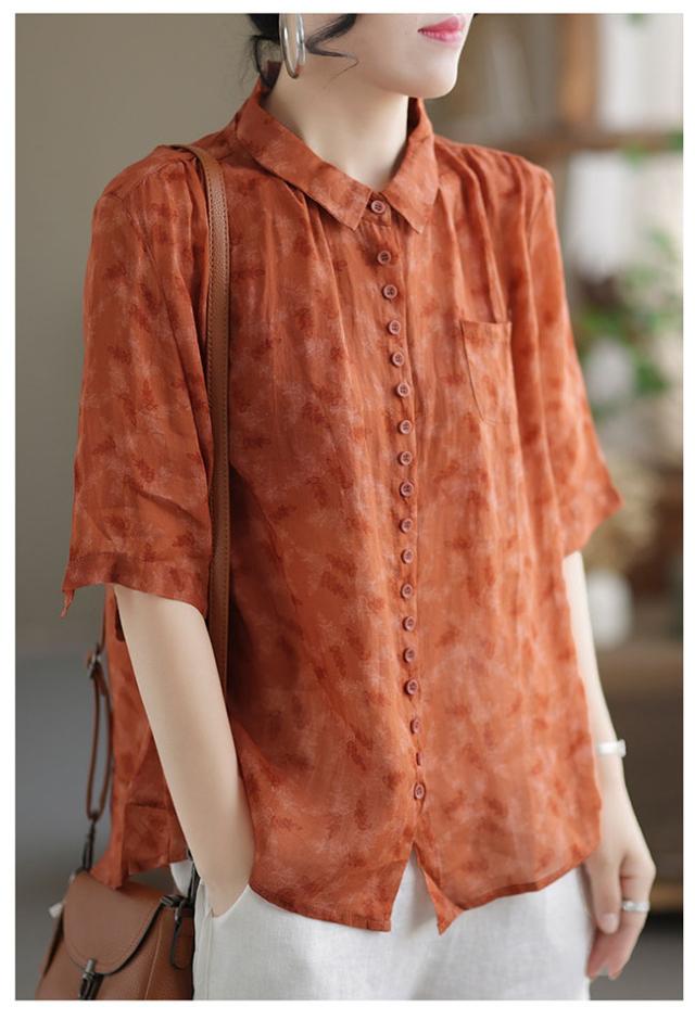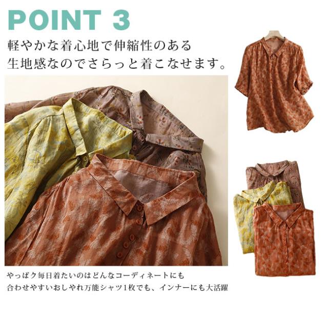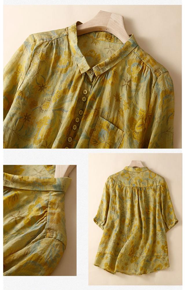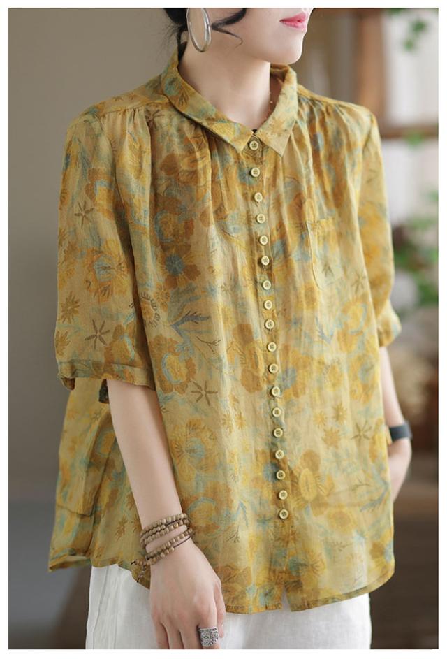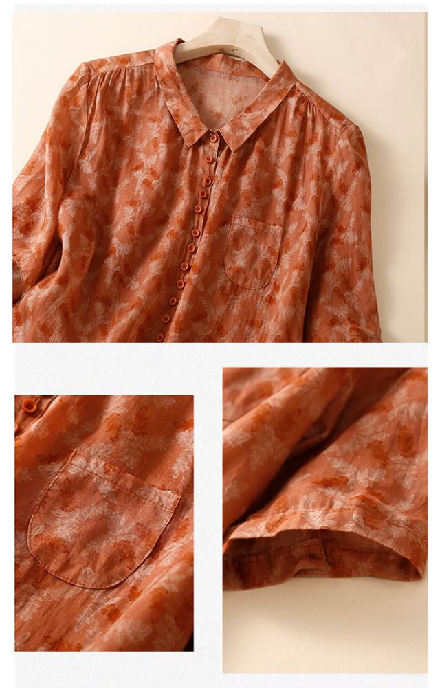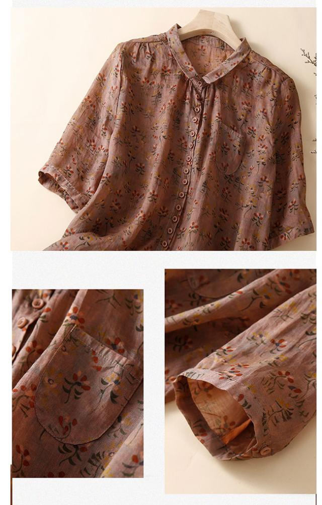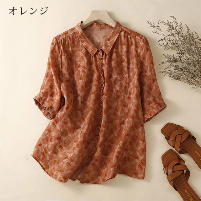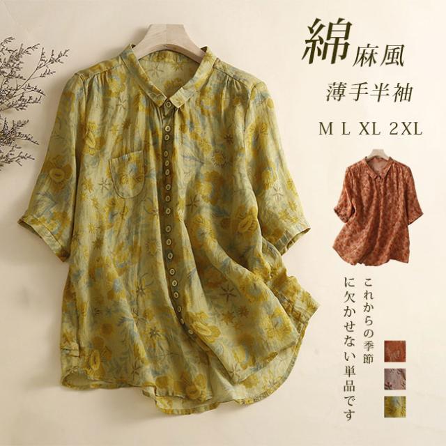 新作 リネン混 シャツ ブラウス レディース 綿麻風 半袖 シャツブラウス 体型カバー おしゃれ 夏 前開き 花柄 カジュアル