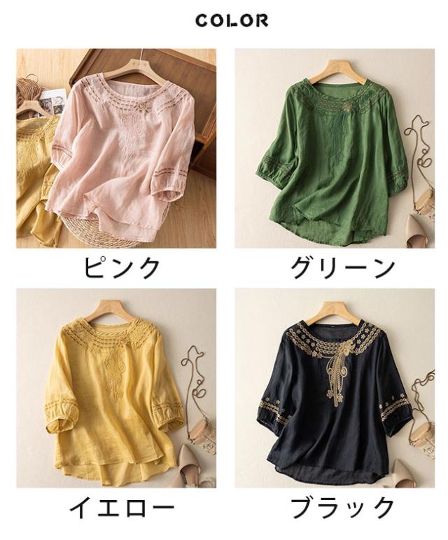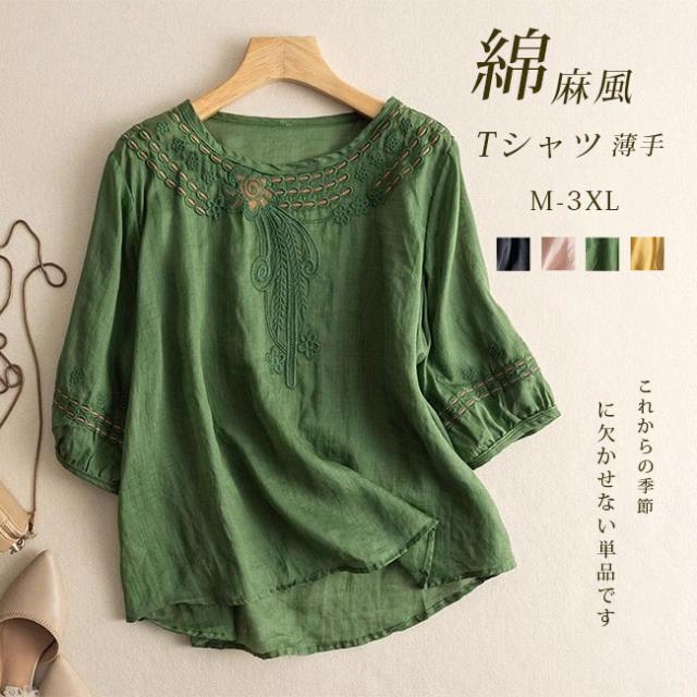 綿麻 Tシャツ ブラウス レディース 半袖 シャツ リネン ブラウス レディース 体型カバー 夏 カジュアル ゆったり 薄手 涼しい おしゃれ