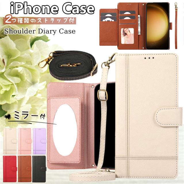 iphone17 ケース 鏡付き スマホショルダー iPhone15 iPhone14 iPhone13 スマホケース ショルダー iPhone16e アイフォン 16 15 14 13 12 11Pro XR XS se 第 2 3 世代 8 plus 手帳型 ケース ミラー付き カバー 肩掛け 斜掛け カード入れ付き 可愛い おしゃれ 耐衝撃 大人