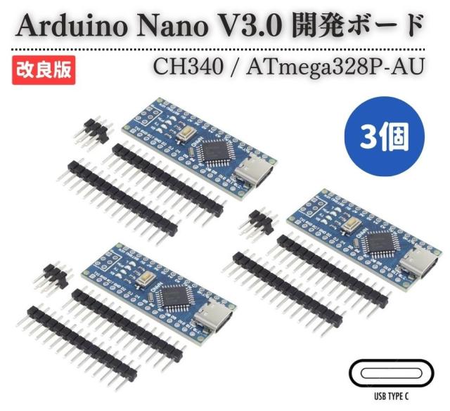 USB TYPE-C Arduino Nano V3.0 CH340 ATmega 328P Atmel mega 328 Nano V3.0 互換 5V 16M マイクロコントローラーボード マイコン 開発ボード 基盤 モジュール 3個