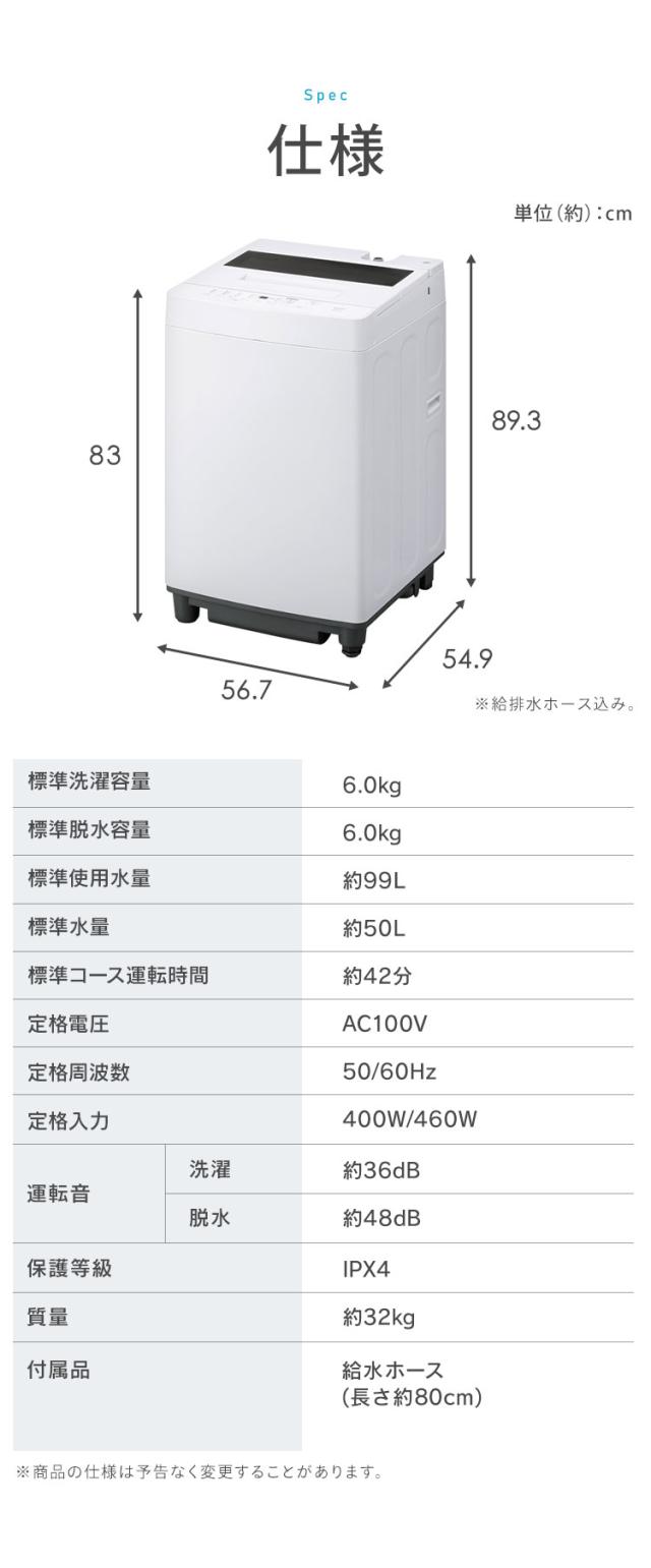 洗濯機 6kg 縦 コンパクト 小型 ひとり暮らし 単身赴任 新生活 シンプル 幅56.7cm 奥行54.9cm 高さ89.3cm 省スペース タイマー 節水 節電 部屋干し アイリスオーヤマ 送料無料