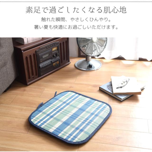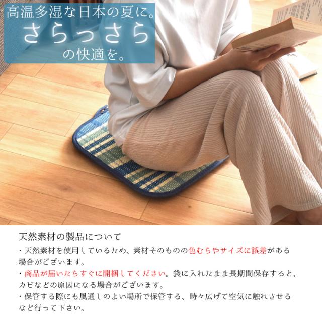 シートクッション フロアクッション 竹 ダイニングチェア 紐付き 座布団 椅子用 チェアパッド 和柄 約40×40cm 刺繍金魚 お盆 天然素材 角型 夏用 暑さ対策