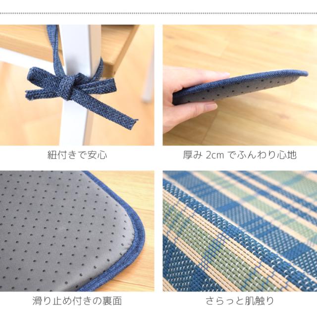 ・ひもがついていて椅子からズレにくく取り外しも楽々。