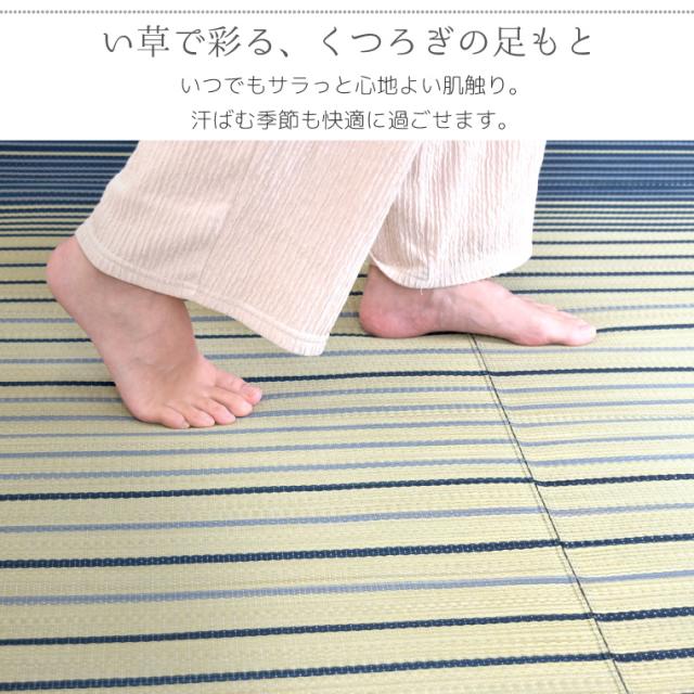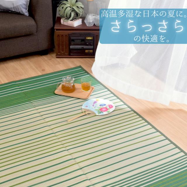 ・さらりと快適ない草のラグ。・い草の特徴の抗菌、防臭、調湿効果で汗ばむ季節も快適に。