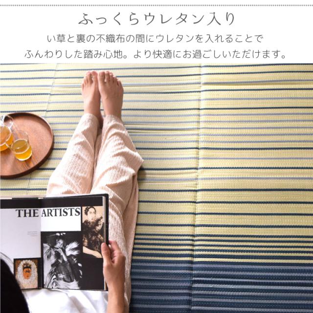い草 ラグ 夏用 カーペット 3畳 約180×230cm グラデーション シンプル コンパクト 天然素材 ごろ寝 イ草 撥水 ウレタン入り ボリューム 上敷き ござ 畳 長方形 マット おしゃれ センターラグ 裏張り 葉山