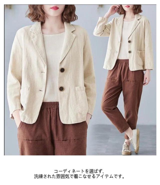 レディース アウター きれいめ ショートジャケット テーラードジャケット 綿麻 ジャケット ショート丈 送料無料 リネンジャケット 涼しい ゆったり 長袖 春夏 無地 上品 OL 洗える 軽量 カジュアル おしゃれ リネンジャケット ビジネス 通勤 オフィス