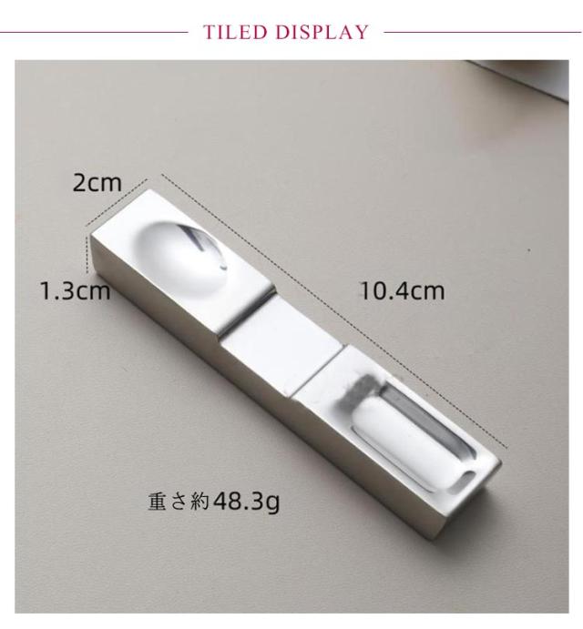 | 華奢でありながら重厚感あふれるカトラリーレスト2個セット カトラリーを目指し、厳選した高級なステンレス304を採用、 錆びにくく程よい重量で上質な使い心地を追求し続ける。 落ち着いた色合いが特徴で、食卓を華やかにしてくれます。 北欧などの洋食器だけではなく繊細な和食器とも相性が良い。 | |