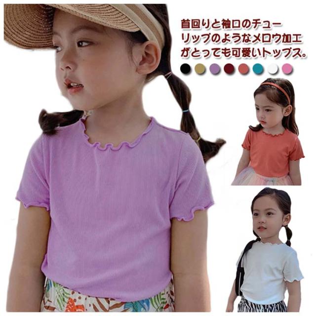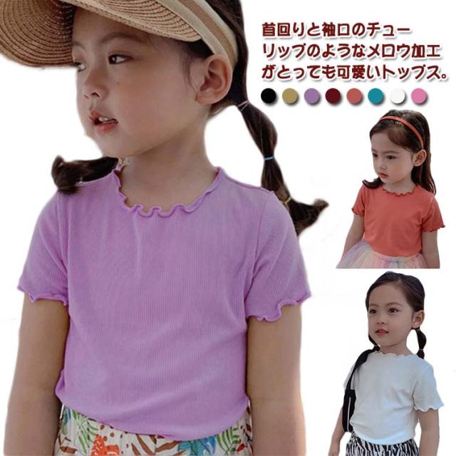メロウトップス 半袖カットソー 半袖 半袖 トップス メロウ Tシャツ メローネック メロウフリル リブトップス リブ カットソー 半袖 女の子 トップス フリル ガールズ フリルトップス 子ども服 キッズ服 リンクコーデ 春夏 着まわし