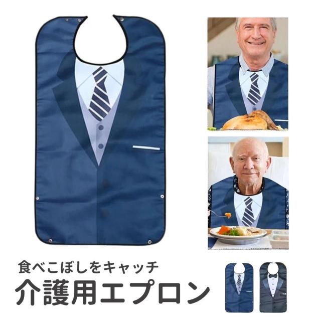 【予約商品納期約1ヶ月】介護用エプロン 高齢者用 よだれかけ スーツ ネクタイ 防水 洗える 繰り返し 撥水加工 シニア 食事用 大人 介護 エプロン 介護エプロン 介護用食事用エプロン 食事用エプロン 男性 女性 介助 おしゃれ 介助用 食べこぼし 老人ホーム