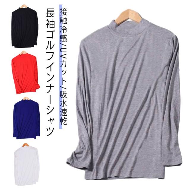 接触冷感 ゴルフ インナー 長袖 アンダーウェア モックネック UVカット メンズ 夏 冷感 薄手 接触冷感 スポーツシャツ 涼感 肌着 吸汗 速乾 日焼け対策 ひんやり ゴルフウェア ストレッチ 紫外線対策 送料無料 大きいサイズ