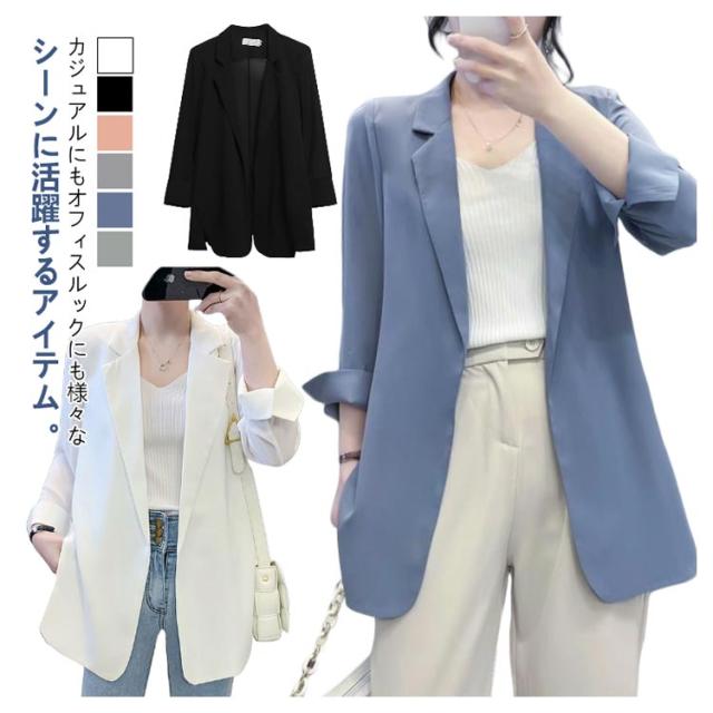 サマージャケット 30代 接触冷感 七分袖 スーツ レディース 洗える オフィス カジュアルスーツ 薄手 春夏 ジャケット カジュアル 春 サマースーツ ジャケット 涼しい ライトアウター カジュアル フォーマル 透け感 トップス シンプル 送料無料 サマージャケット 40代