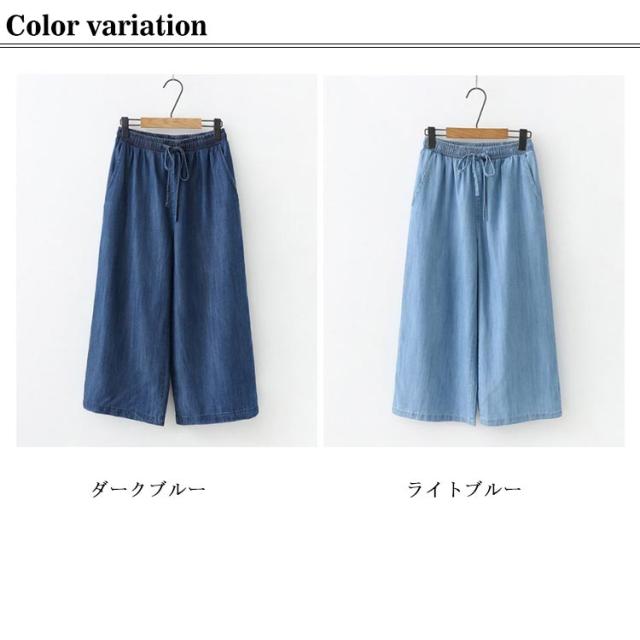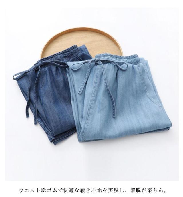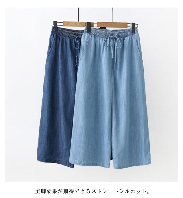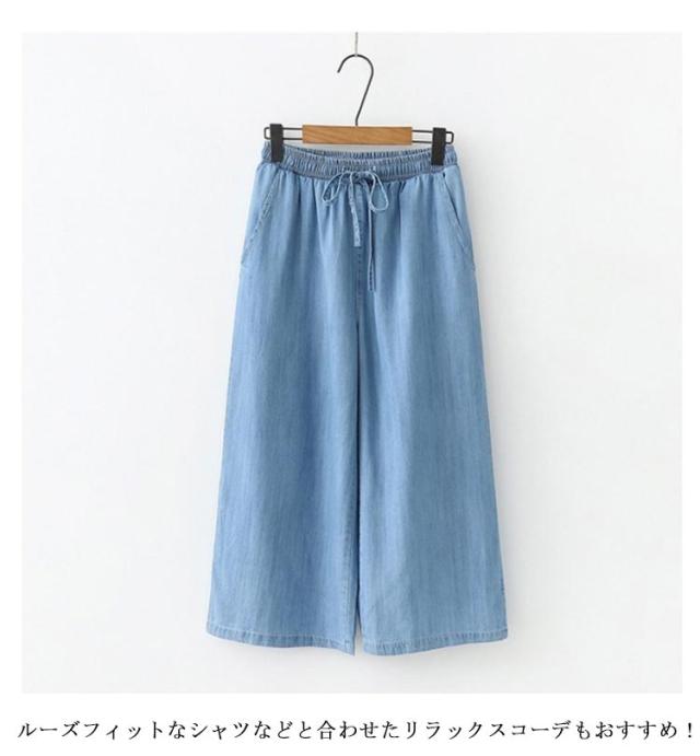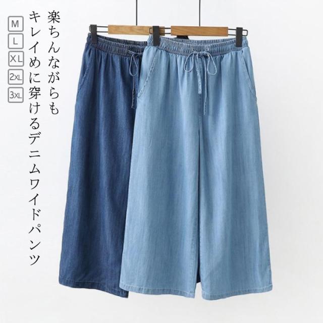 ガウチョパンツ チノパンツ 7分丈 レディース カジュアル 女性 デニム 春夏 涼しい ボトムス 大人 ゆったり ワイド 楽ちん シンプル パンツ リラックス 無地 きれいめ お洒落 体型カバー ゆったり ウエストゴム 大きいサイズ 大人 ワイドパンツ