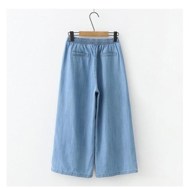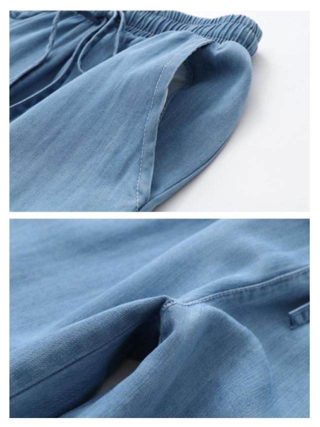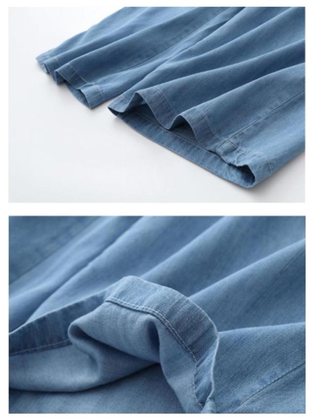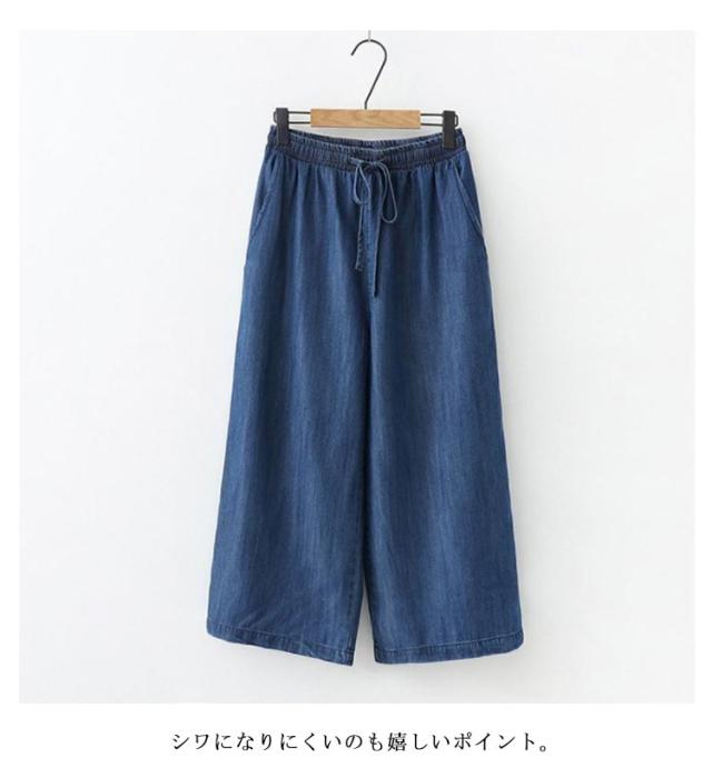 | 楽ちんながらもキレイめに穿けるデニムワイドパンツ ウエスト総ゴムで快適な履き心地を実現し、着脱が楽ちん。 美脚効果が期待できるストレートシルエット。 シワになりにくいのも嬉しいポイント。 ルーズフィットなシャツなどと合わせたリラックスコーデもおすすめ! | |