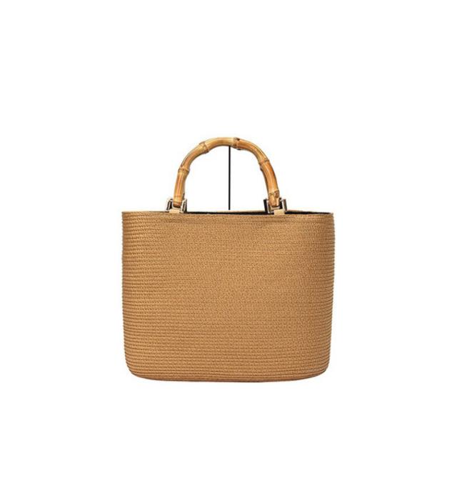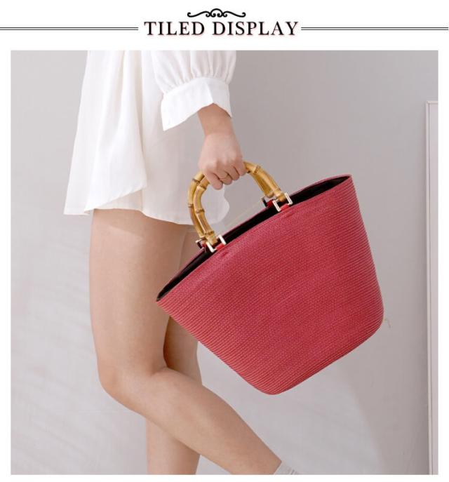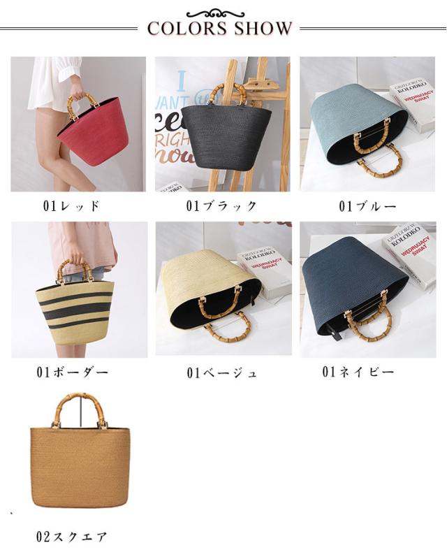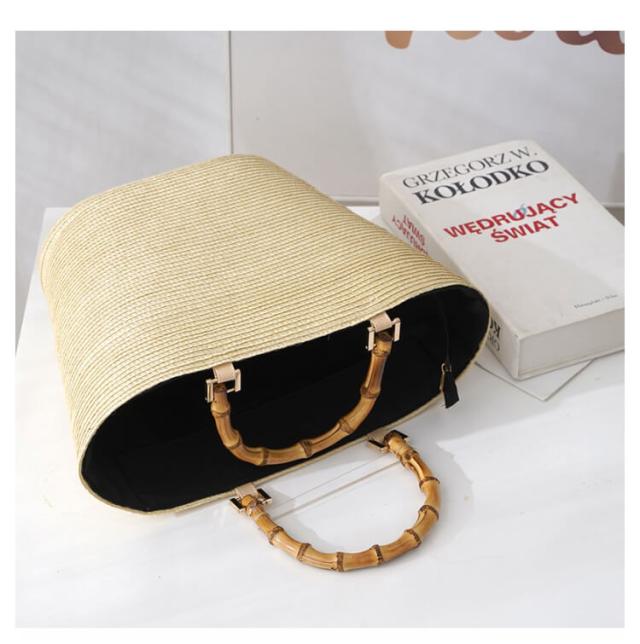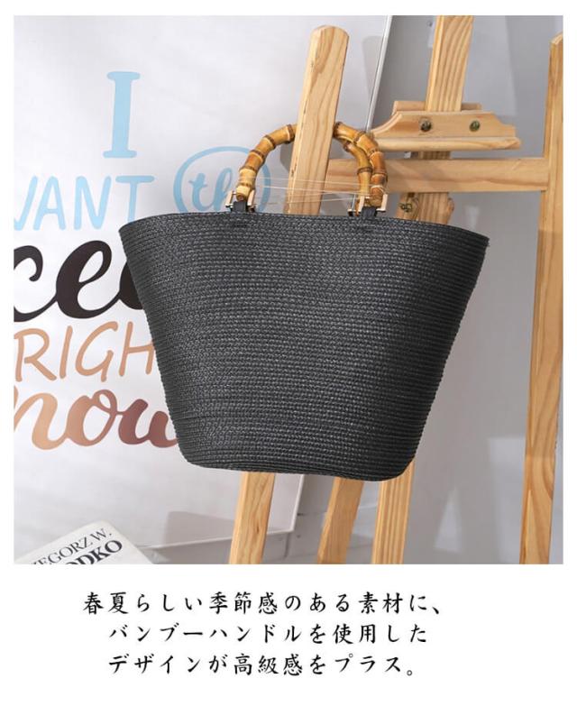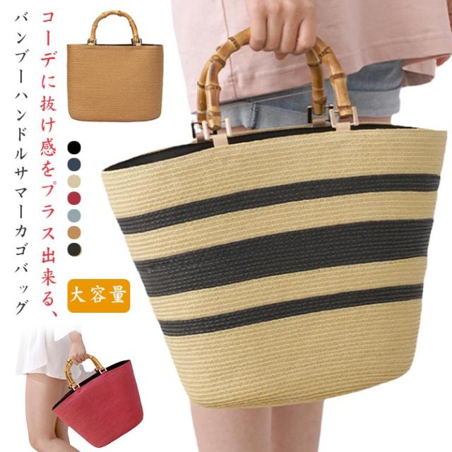 かごバッグ バンブーハンドルバッグ 大容量 ストローバッグ バンブーハンドル バスケットバッグ 通勤 ファスナー開閉 内ポケット ギフト プレゼント トート 夏 浴衣 花火 夏休み お盆 お出掛け 夏カバン 手持ち 手提げ