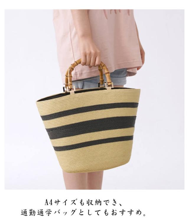 | ・コーデに抜け感をプラス出来る、バンブーハンドルサマーカゴバッグ ・春夏らしい季節感のある素材に、バンブーハンドルを使用したデザインが高級感をプラス。 ・A4サイズも収納でき、通勤通学バッグとしてもおすすめ。 | |