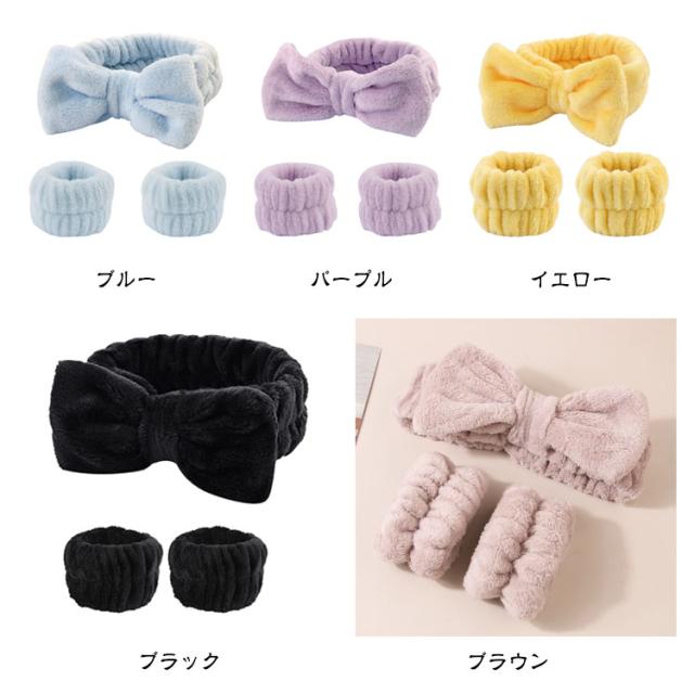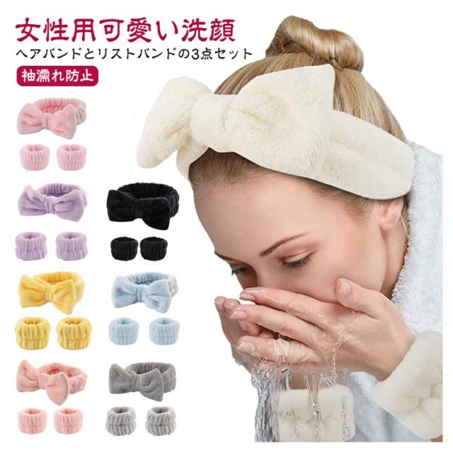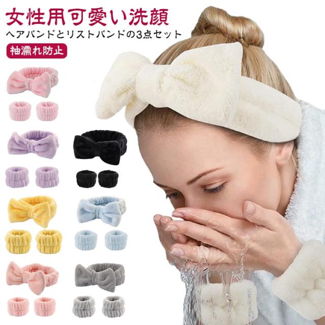 ヘアーバンド 3点セット タオルバンド リボン 吸水リストバンド かわいい 手首バンド 吸水 ヘアキャップ 洗顔用 マイクロファイバー 洗顔リストバンド ふんわり 伸縮性 リストバンド ヘアーバンド 洗顔 レディース 袖濡れ防止 ヘアターバン 髪用
