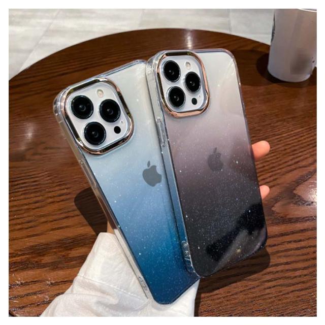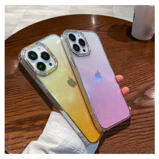 スマホ iPhone12 ハードケース iPhone14proMax iPhone15 スマホ スマホケース グラデーション 11Pro ProMax クリア カバー かわいい 透明 オーロラ 大人可愛い ケース アイフォン キラキラ ラメ グリッター カメラ保護 おしゃれ 携帯ケース