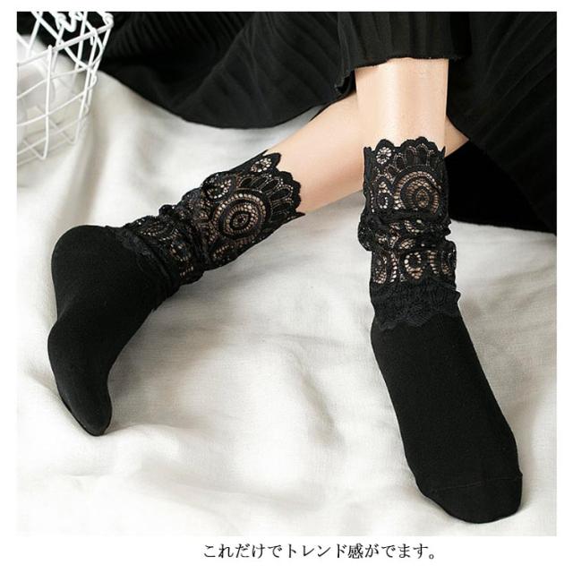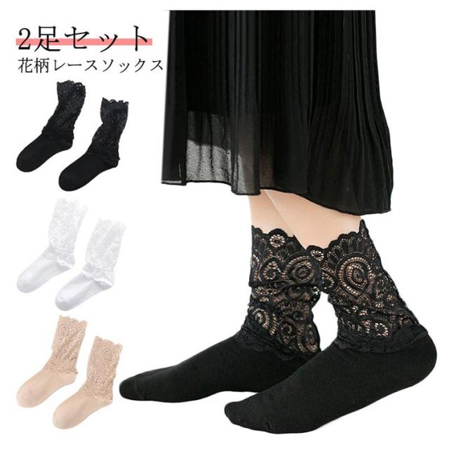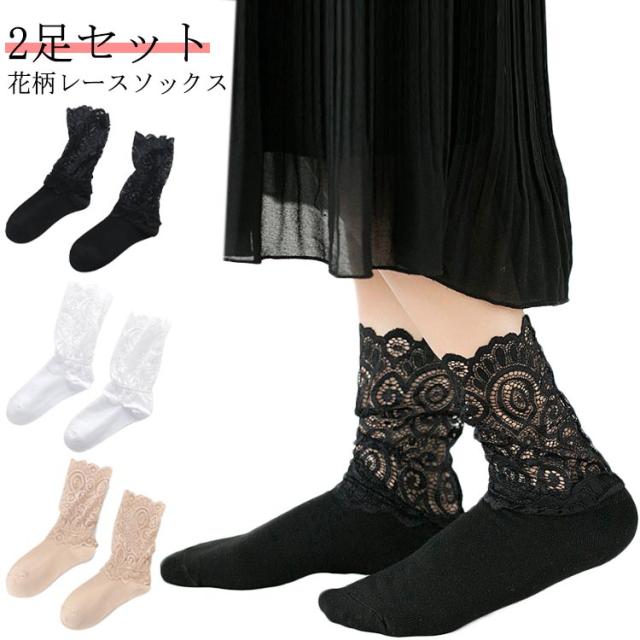 花柄レースソックス 花柄レースソックス そっくす レディース ソックス 靴下 2足組 折り返し スニーカー シースルー 25センチ ハイソックス レースくつ下 冬 ソックス レース レース靴下 秋 ブラック くつした ブーツ ソックス レース ホワイト