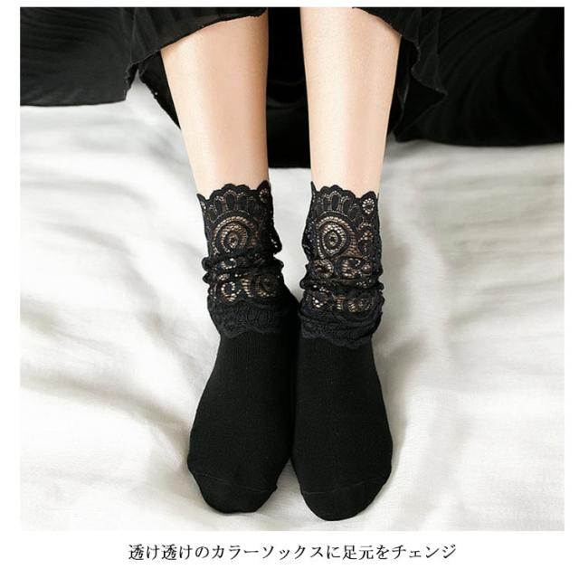 | ガーリーなアクセントにもピッタリなレース付きソックス。 透け透けのカラーソックスに足元をチェンジ これだけでトレンド感がでます。 パンプスで女性らしさをぐんと上げてレースならではの透け感がエレガントな雰囲気です。 ホワイトはガーリーに、ブラックはオトナっぽく、カラーによって印象がガラっと変わります。 しっかりフィットするので、履き心地も◎ | |