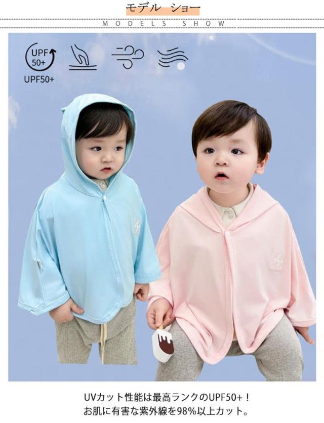 子供服 キッズ ベビー プール フード付き UVカット 日焼け防止 ベビーケープ 羽織り アウター クマ耳 ベビー服 夏 接触冷感 秋 紫外線対策 UVカット 暑さ対策 ひんやり 海 春 可愛い マント UVカット パーカー